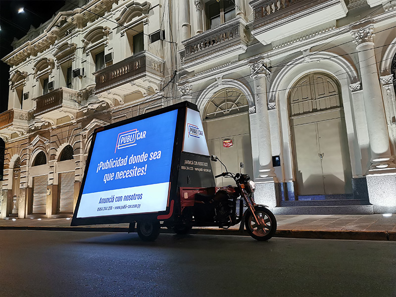 Cartel en moto. Una forma dinámica de exponer tu publicidad, realizando un circuito por las principales calles y avenidas de cada ciudad con una ruta planeada estratégicamente en conjunto, para llegar al público objetivo.